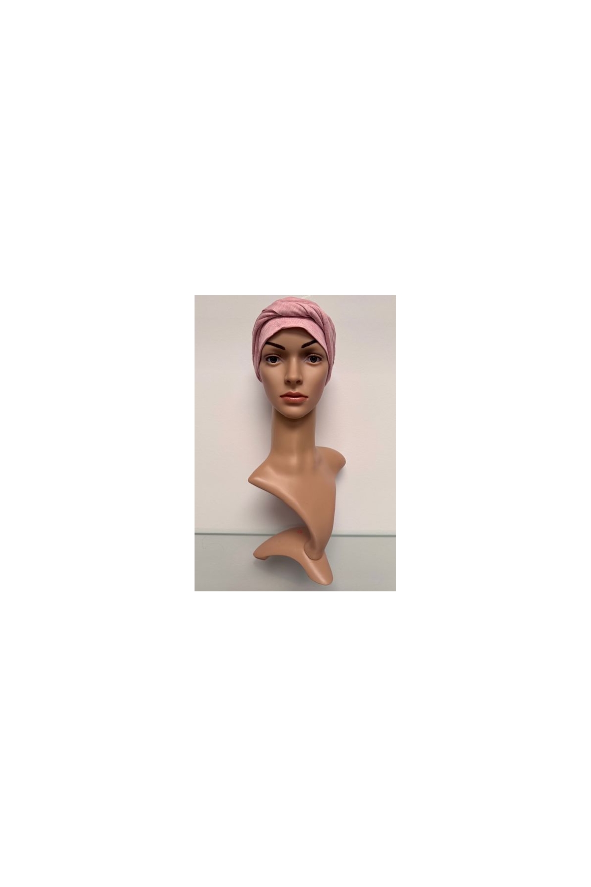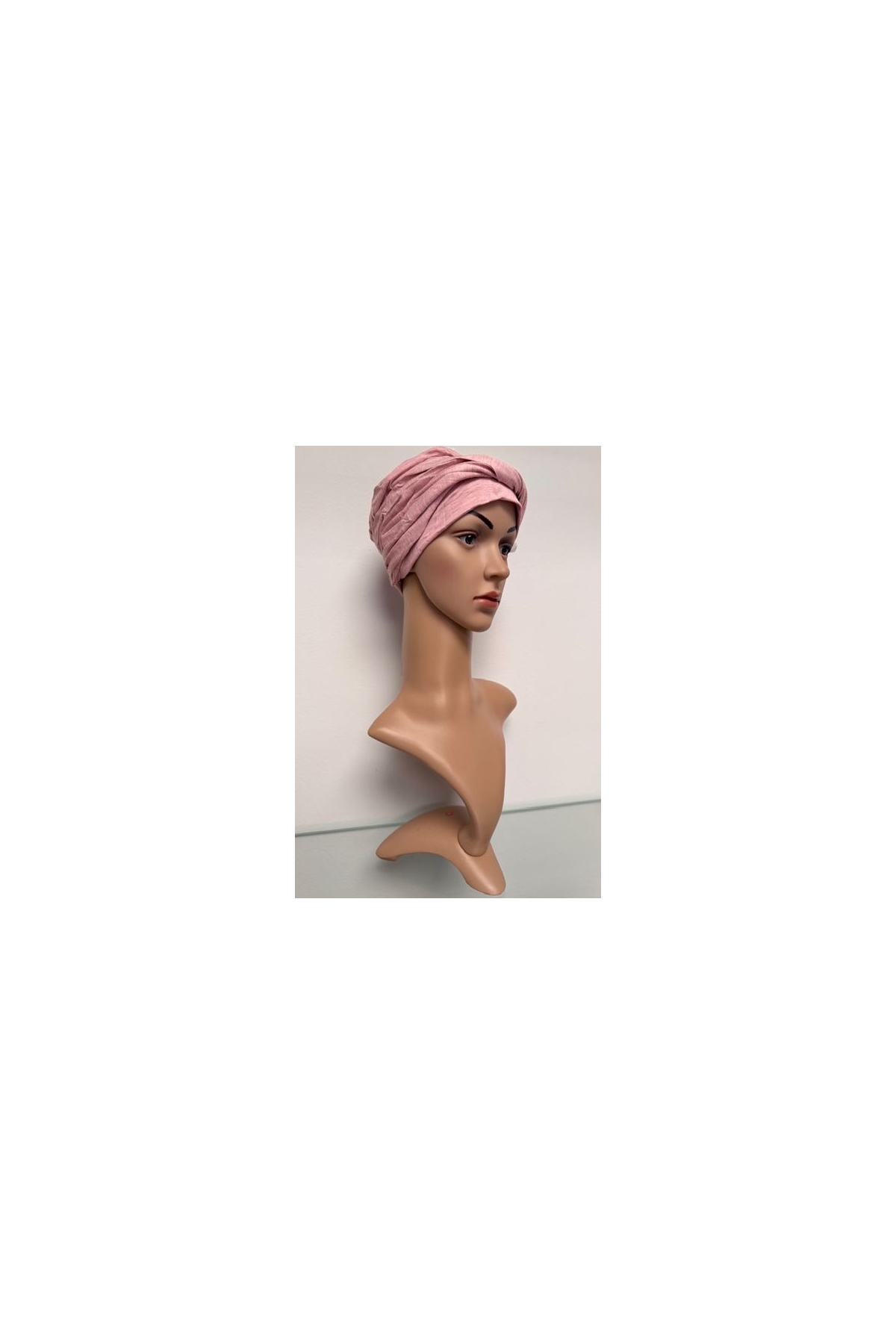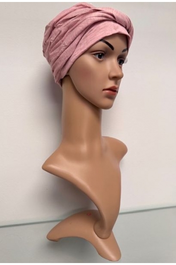 Elegantný turban v ružovej farbe s prišitou čelenkou.