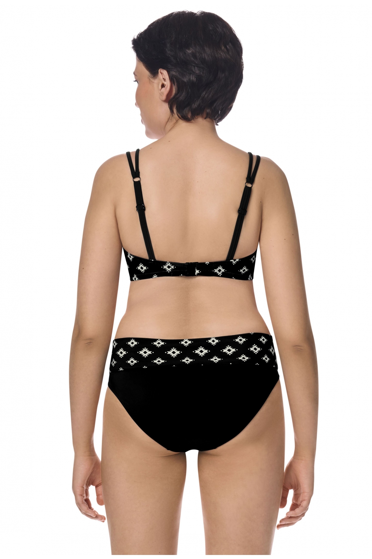 Nadčasový vrchný diel plaviek vyrobený zo štruktúrovaného rebrového materiálu.