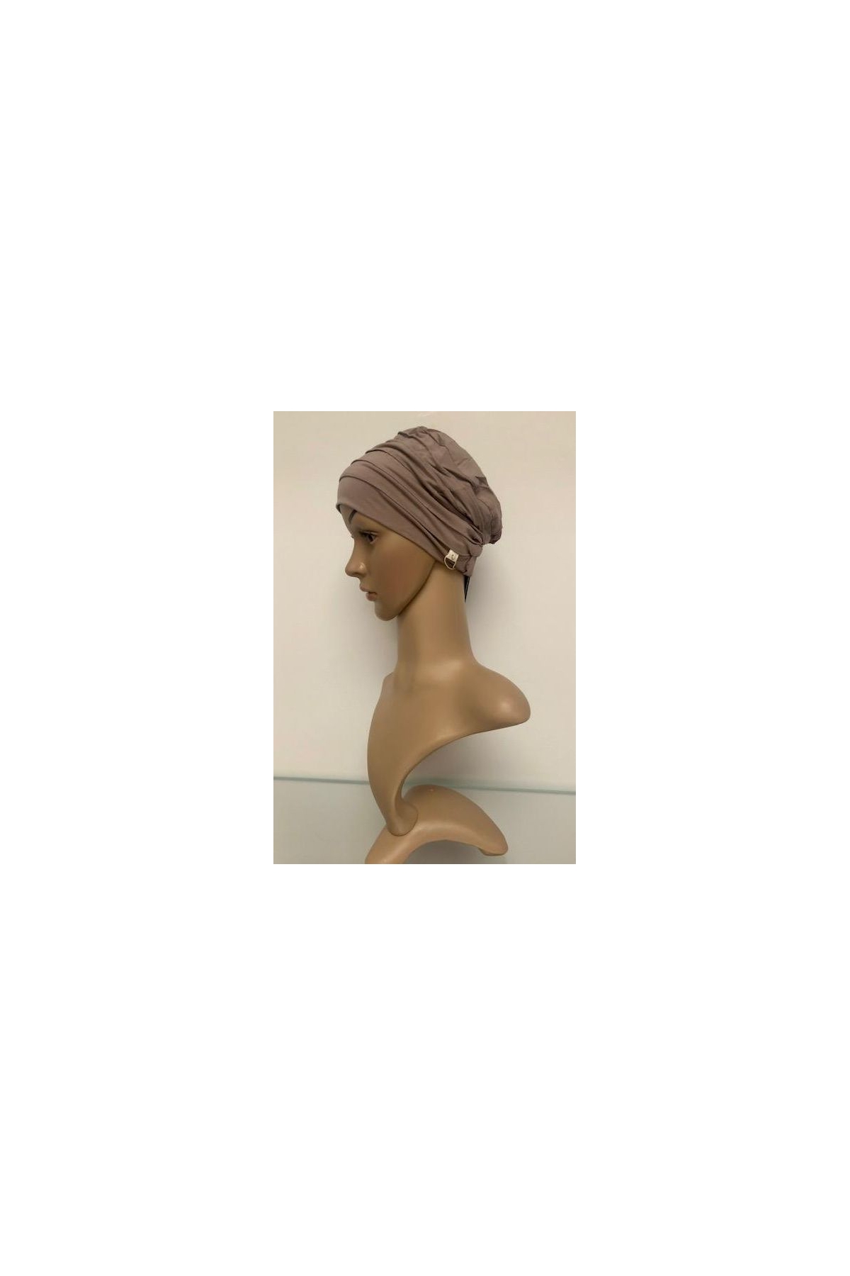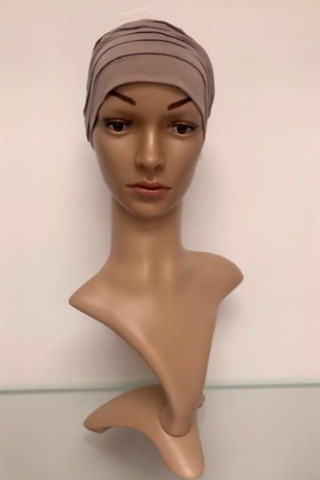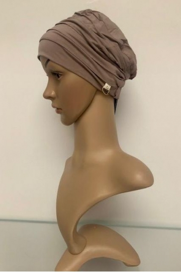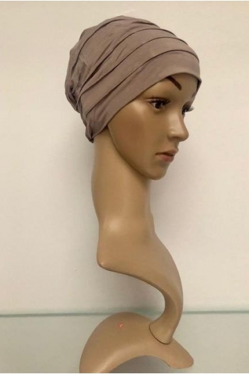 Elegantní turban hnědé barvy. Hodí se pro běžné denní nošení.